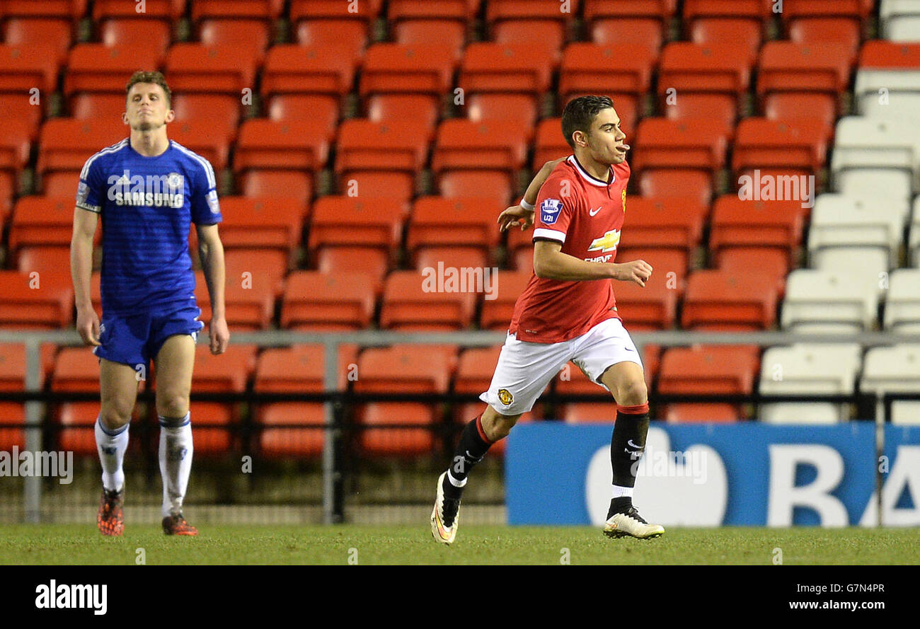 Fussball Barclays U21 Premier League Manchester United Gegen Chelsea Leigh Sports Village Andreas Pereira Von Manchester United Feiert Das Tor Seines Teams Zum 1 Tor Gegen Chelsea Stockfotografie Alamy